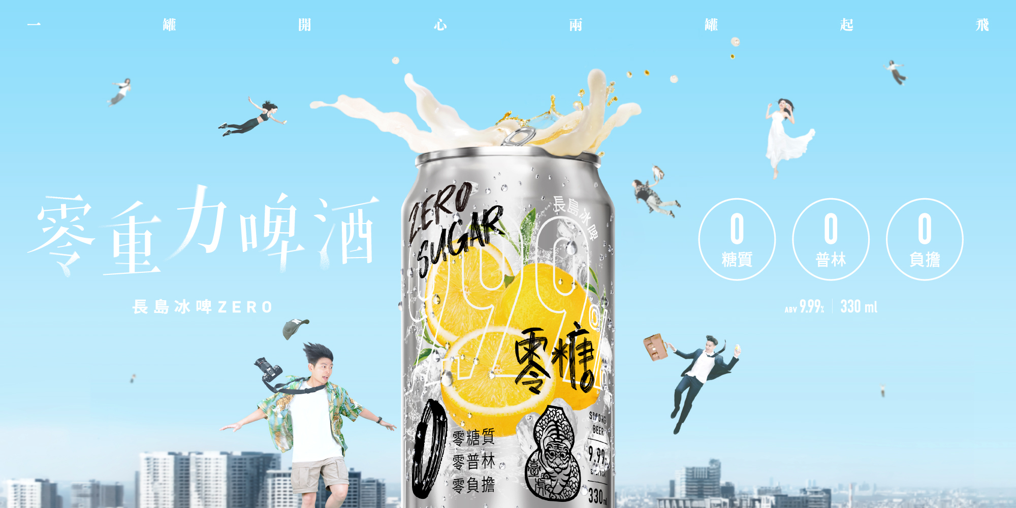 調酒型啤酒全新系列「9.99 ZERO」,打造出最帶勁的零糖質啤酒新紀元!將長島冰啤進化成無負擔的買醉神器,以清新檸檬結合純天然發酵的9.99%高酒精濃度,大幅降低甜度,更凸顯無酒感的銷魂檸檬香,伴隨著快速有感的酒精度,帶來爽口喝不膩的極致快感。